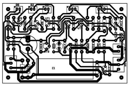 作電壓源時:將輸出端短路,調整W1使輸出電流為最大負載電流的1.2倍左右。選擇合適的接線端子,最好使負 作電流源時:將輸出端開路,調整W2使輸出電壓為最大負載電壓的1.2倍左右。短路輸出端子,調整W2使電流為所需值,接入負載即可。 作測量時:應調整電流或電壓使之符合我們的測試條件。譬如我們要測試某個0.5 W的穩壓二極管在電流等于30mA時的穩壓值,可將電流調至30mA接入二極管,電壓表的指示即是穩壓值。在測試時電壓的調整也應注意,即不能低于二極管的穩壓值,如果LED1發光說明電壓已低于二極管的穩壓值而進入穩壓態,應調整電壓使之脫離穩壓態;也不能調得太高,以防有穩壓值高的二極管時發生過載,在這里0.5/0.03=16.6V。 在使用中如果LED1和LED2同時發光則說明電源進入一種臨界狀態,這時應注意調整電壓或電流使之脫離這種狀態,只要它不是你所需要的。 右圖是印刷電路板圖,尺寸110mm×70mm。 你有意制作需要協助時,如機箱、面板、印刷電路板,以及你認為不易采購的特殊元件等,可發電子郵件至:divli@163.com,提出要求。有一定數量時,大家一齊加工,以降低成本。 已有報價,電阻1分,電解電容6分—1元,優質電路板2分5 /平房厘米,1.5毫米厚鋁面板5分/平方厘米。 |