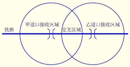 用戶要求和特殊情況時使用,如使用有線話筒時。 DX-3Y-1型、一控二設計,使用下圖所示的小4鍵遙控手柄。同一只遙控手柄,在下圖所示的兩個道口接收交叉區域內,分別控制兩個道口的工作互不影響 。