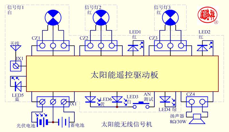 2、遙控器沒電、損壞、不在手邊時不能控制信號機工作。 下面是控制系統(tǒng)示意圖: